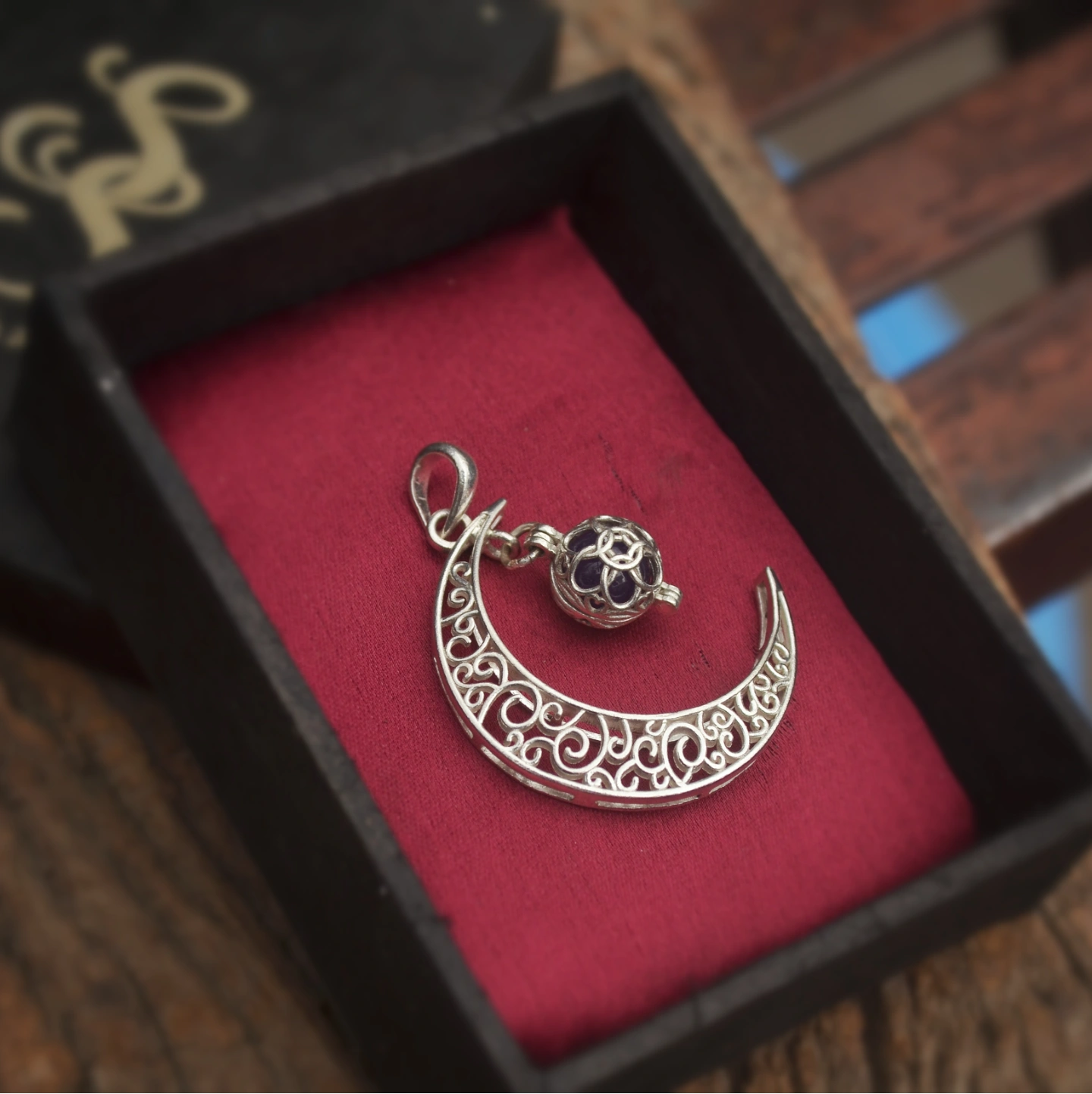Embrace timeless elegance with our Celestial Crescent Pendant — a perfect blend of art and charm. Crafted in detailed silver with a graceful moon design, this piece symbolizes mystery and beauty. Ideal for dreamers and stargazers. Shine with the magic of the moon wherever you go.