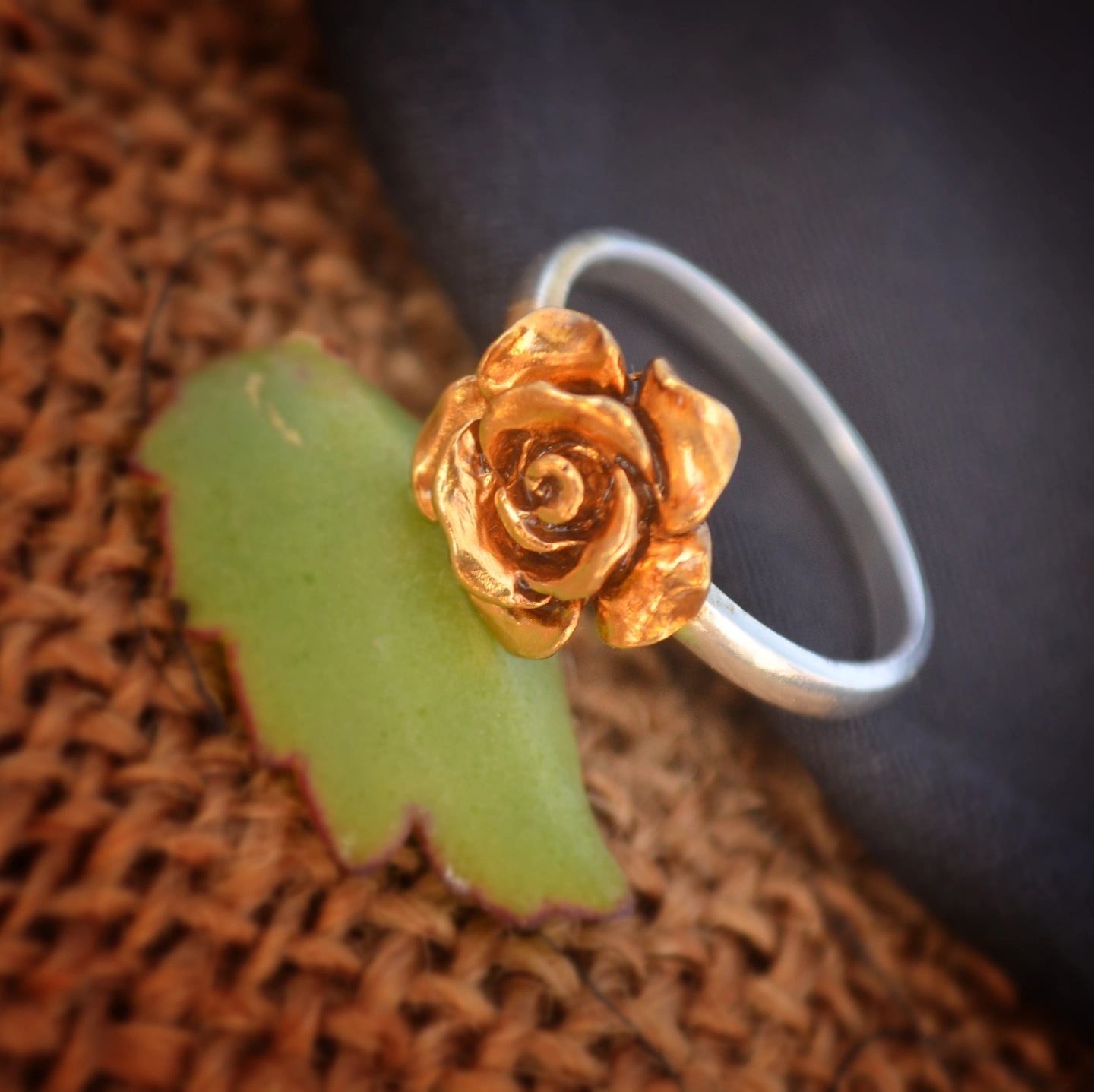 A delicate blend of elegance and nature, the Golden Rose Bloom Ring features a beautifully crafted rose in a warm golden finish set on a sleek silver band. Its graceful floral design symbolizes love and beauty, making it a perfect accessory for everyday wear or a thoughtful gift for someone special.