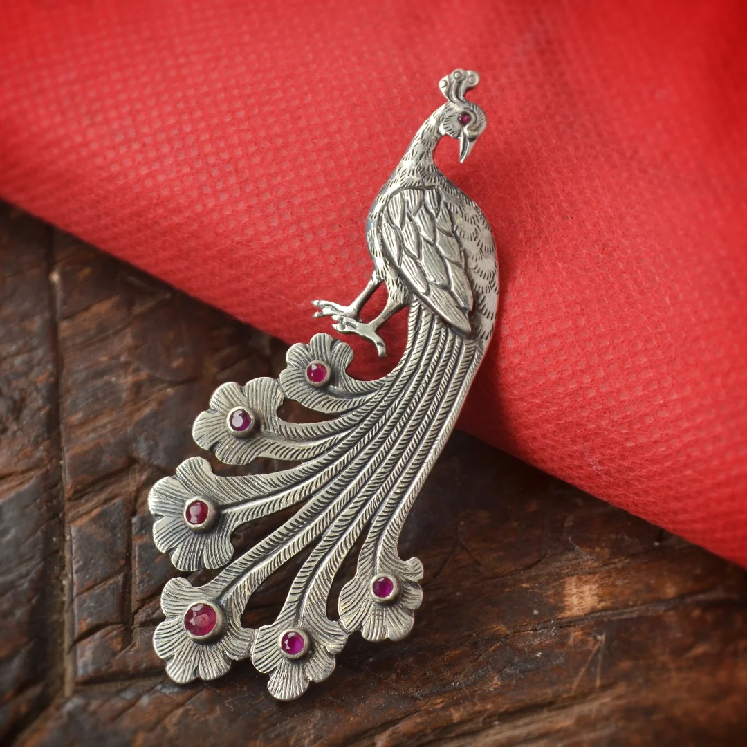 The red gem adds a touch of color and sparkle, enhancing the brooch's overall beauty.