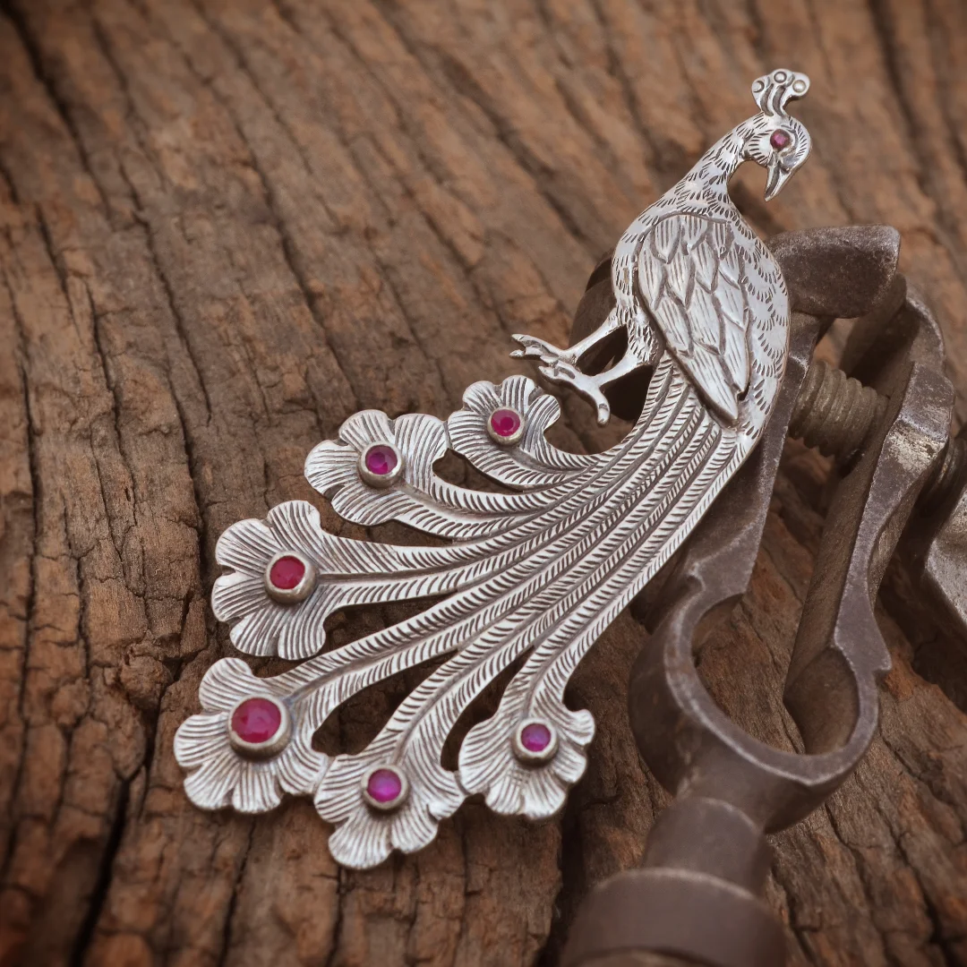 The peacock's feathers are meticulously detailed, creating a realistic and captivating appearance.