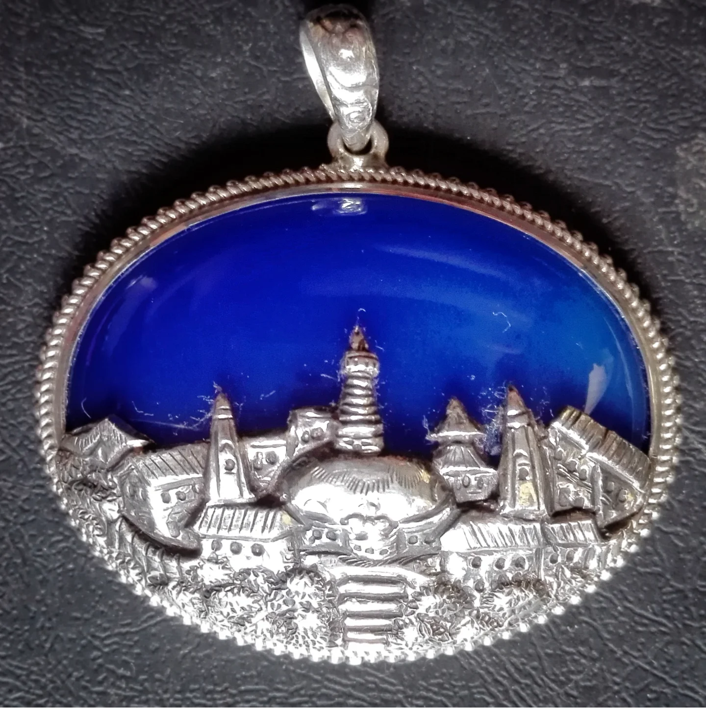 A beautiful Swoyambhu locket inspired by Nepalese heritage. Features the iconic stupa and a gemstone, beautifully capturing the essence of Nepal.